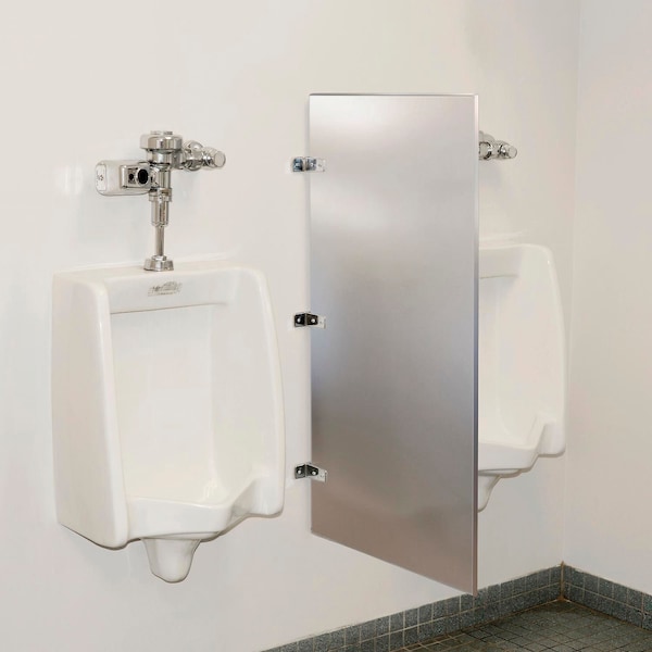 Create privacy for urinals in public bathrooms with Global Industrial™ bathroom stainless steel urinal screens. Restroom privacy partitions are 1in thick and made using Type 304 stainless steel. Urinal screens are formed and cemented under pressure to a double faced honeycomb paper core. Includes bracket kit and hardware for easy wall mounting.