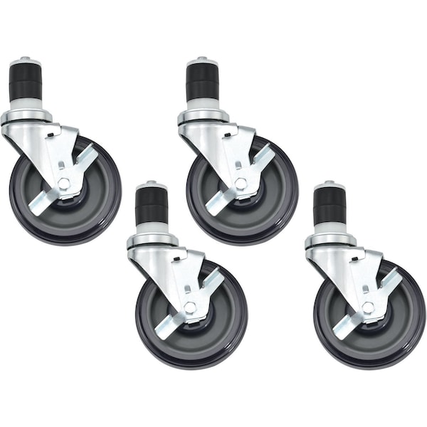 Caster Kit For Stainless Steel Workbenches, 5 Swivel Locking Casters, 4PK