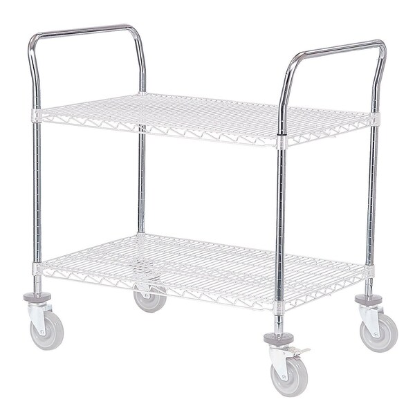 . Utility Cart Handles are offset tubular handles constructed of 1 steel tubing, grooved on 1 increments for easy shelf adjustment. 33H. Priced each, sold in packages of 2. Chrome over nickel electro plating creates a brilliant high gloss finish. Easy assembly. NSF approved dry use.
