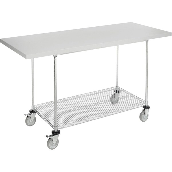 Chrome Wire Mobile Workbench, 72 x 30in, Laminate Square Edge
