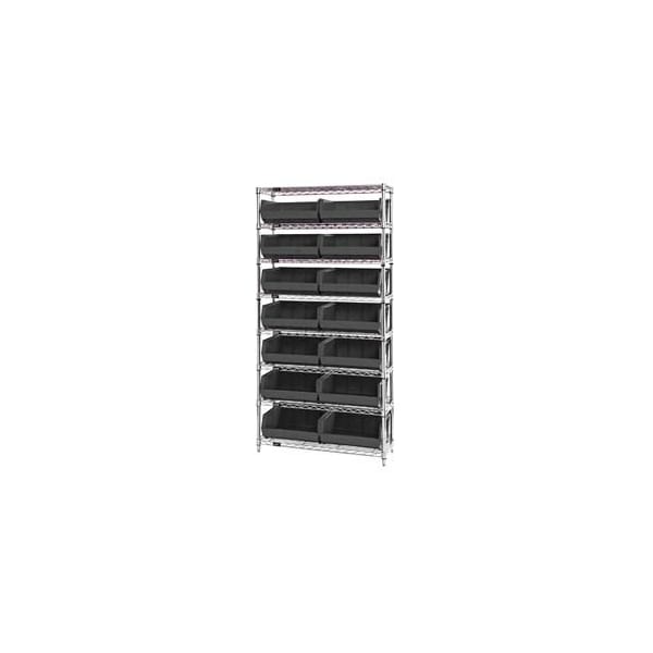 Chrome Wire Shelving With 14 Giant Plastic Stacking Bins Black, 36x14x74