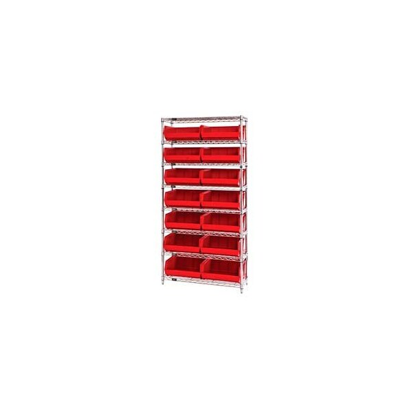 Chrome Wire Shelving With 14 Giant Plastic Stacking Bins Red, 36x14x74