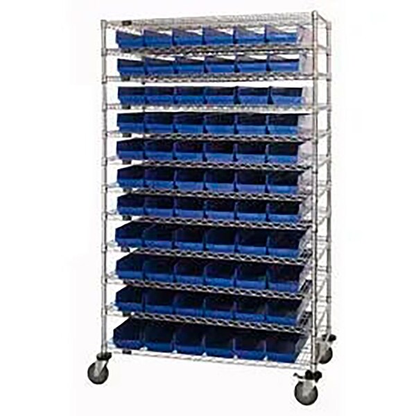 Chrome Wire Shelving with 143 4"H Plastic Shelf Bins Blue, 60x18x74
