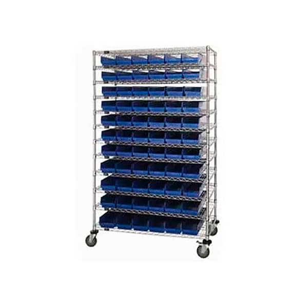 Chrome Wire Shelving with 176 4"H Plastic Shelf Bins Blue, 72x14x74