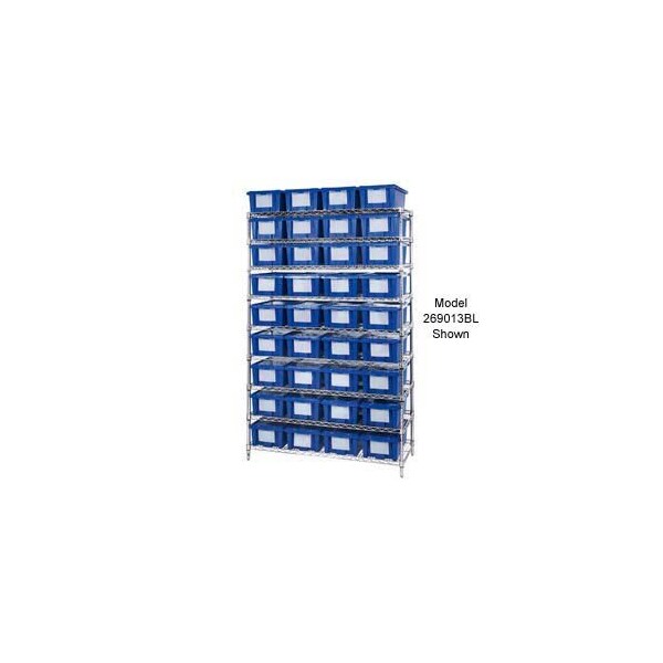 Chrome Wire Shelving With 24 9inH Nest & Stack Shipping Totes Blue, 48x18x74