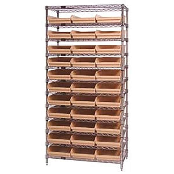 Chrome Wire Shelving with 33 4"H Plastic Shelf Bins Stone, 36x18x74