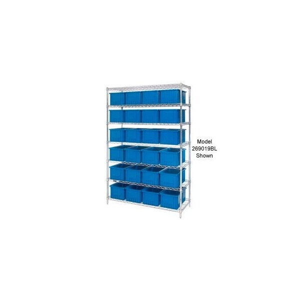 Durable chrome wire shelving combined with dividable grid containers are ideal for storing small to large parts. Dividable containers allow multiple configurations within each bin. Heavy duty grid containers are great for storage, assembly, fabrication and distribution applications. Chrome wire shelving offers an attractive finish thatfts suitable for retail environments. Chrome wire shelves feature truss perimeter for extra strength and reinforcement while allowing light, air and sprinkler penetration. 750 lb. shelf capacity. Open wire design helps reduce dust accumulation. Divider box containers are made of high-density FDA approved polyethylene. Ribbed external sides provide strength and withstand impacts. Divider boxes are injection molded and resist most solvents and chemicals. Add mobility to your Shelving unit with Optional Caster Kits. Easy assembly.