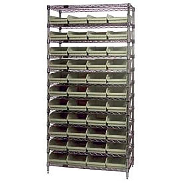Chrome Wire Shelving with 44 4"H Plastic Shelf Bins Stone, 36x14x74
