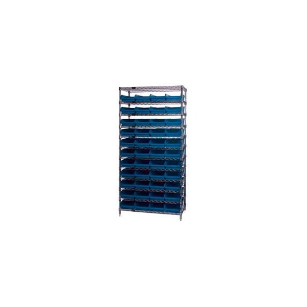 Chrome Wire Shelving with 44 4inH Plastic Shelf Bins Blue, 36x14x74
