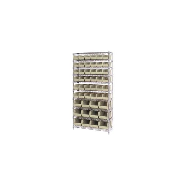 Chrome Wire Shelving With 48 Giant Plastic Stacking Bins Ivory, 36x14x74