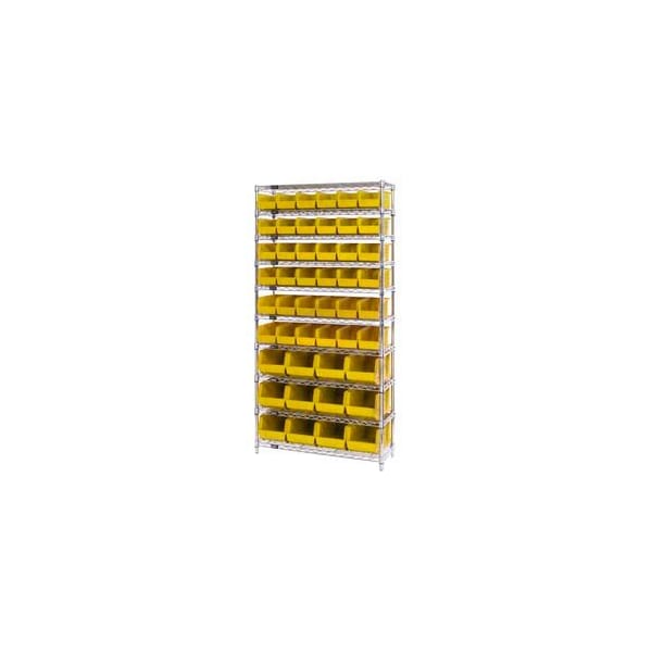 Chrome Wire Shelving With 48 Giant Plastic Stacking Bins Yellow, 36x14x74