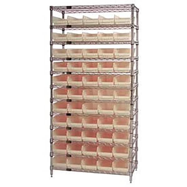Chrome Wire Shelving with 55 4"H Plastic Shelf Bins Stone, 36x18x74