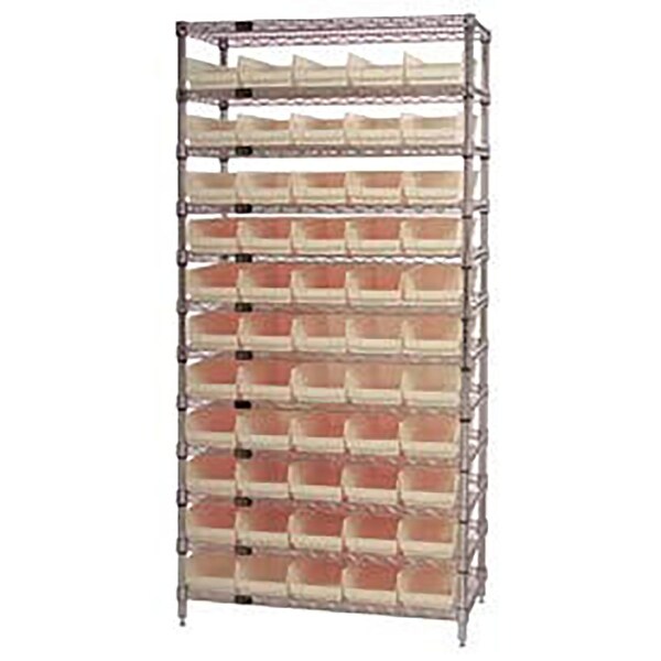 Chrome Wire Shelving with 55 4"H Plastic Shelf Bins Stone, 36x24x74
