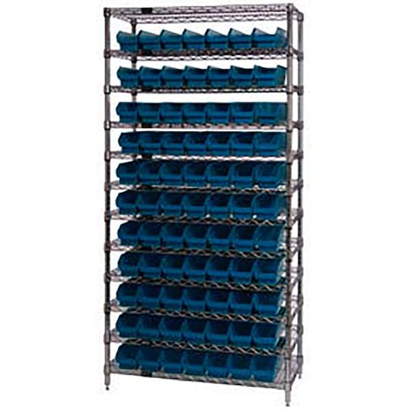Chrome Wire Shelving with 77 4"H Plastic Shelf Bins Blue, 36x18x74