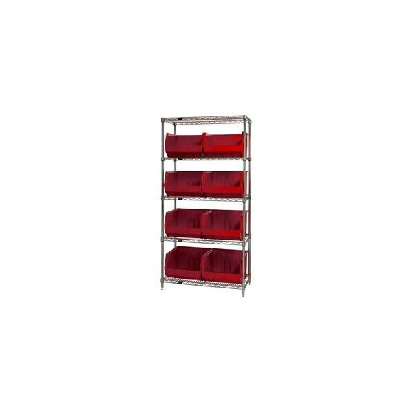 Chrome Wire Shelving With 8 Giant Plastic Stacking Bins Red, 36x18x74