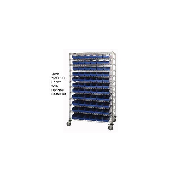 Chrome Wire Shelving with 91 4inH Plastic Shelf Bins Blue, 48x14x74