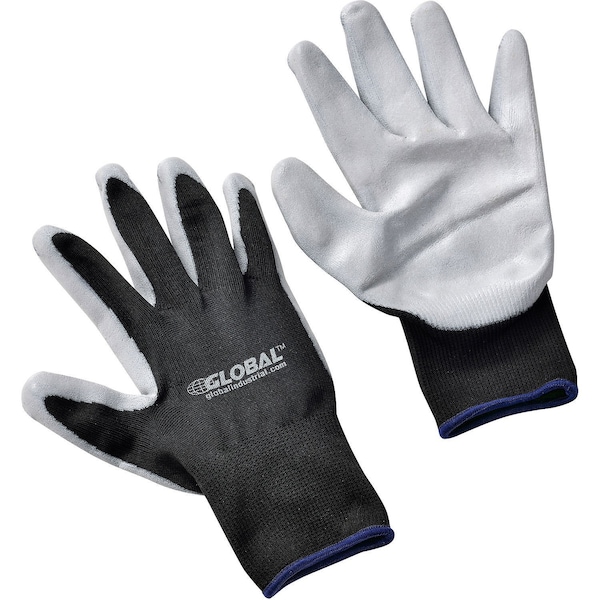 These nitrile coated gloves provide palm and finger protection for oily or dry working conditions including automotive, material handling, maintenance and repair, and more. The nitrile coating material improves glove strength for added cut protection and user safety. Includes a nylon lining and foam coating. Features a binding cuff style for added support. Color is Gray/Black. Package quantity is 12 pairs. Size is XL. ANSI/EN approved.