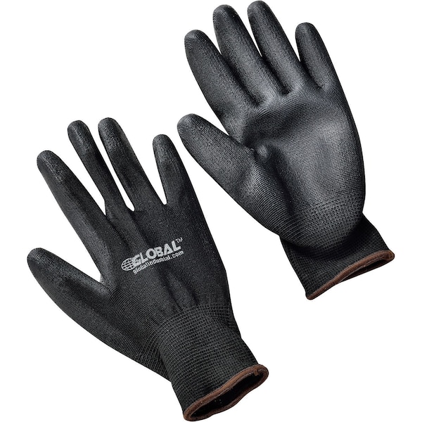 Coated Gloves, Nylon, Polyurethane, Black, L