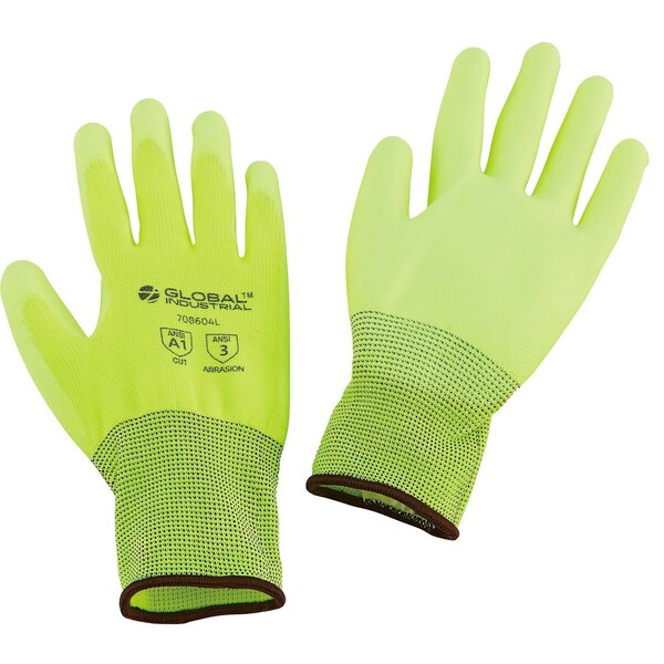 Our gloves provide hi-visibility palm and finger protection for dry working conditions including construction, material handling, and maintenance and repairs. The polyurethane coating provides flexibility while also being tear-resistant. Nylon lining and flat coating promotes comfort and helps users maintain a good grip on tools and machinery. Features a binding cuff style for added support. ANSI/EN approved.