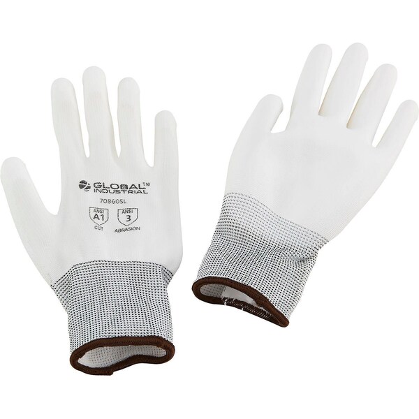 Coated Gloves, Nylon, Polyurethane, White, L