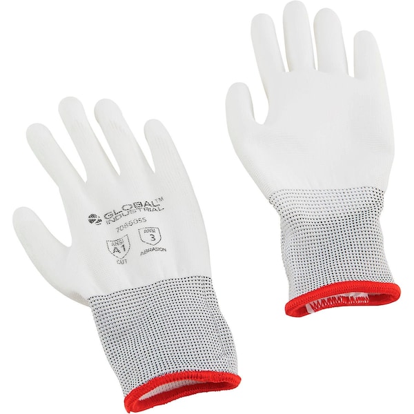 Coated Gloves, Nylon, Polyurethane, White, S