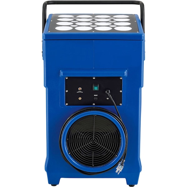 4-Stage filtration system for advanced air purification. Coverage area of 1600 FT. 99.97% Purification against 0.3-micron particles. The Global Industrial commercial grade air scrubber & negative air machine is designed to provide advanced levels of air purification in a variety of applications such as construction, disaster relief, home remodeling, reclamation, reconstruction and much more. Constructed of rotomolded plastic, this commercial grade air scrubber and negative air machine is evenly layered in a second skin thatfts thicker than injection molding and permits higher levels of flexibility and endurance during extreme temperatures or rough impact. Built to perform in a wide range of commercial and industrial settings and rugged environments, this unit produces 1000 CFM. Placed stand alone in a room for purification, it acts as an air scrubber. When attached to ducting to exhaust filtered air outside the affected area, it operates as a negative air machine. The Global Industrial Commercial air scrubber & Negative Air Machine utilizes a 4-stage filtration system for advanced air purification: The first two stages are a paper pre-filter and pleated MERV 9 filter that collects and traps pollen, hairs, mold, and larger dust particles. The third stage is an activated carbon filter that pulls in and helps to eliminate smoke and odors. The final stage is a HEPA filter with an efficiency rating of 99.97% against 0.3-micron particles and will catch bacteria, allergens, dusts, and fumes. To maintain optimal performance it is recommended that the pre filter and MERV 9 filter be changed every 3 months and the activated carbon filter be replaced every 6 months. There is an indicator light on the control panel that will illuminate when the HEPA filter should be replaced. The Global Industrial Commercial air scrubber & Negative Air Machine ships with all 4 filters included. Replacement filters are available for purchase separately.