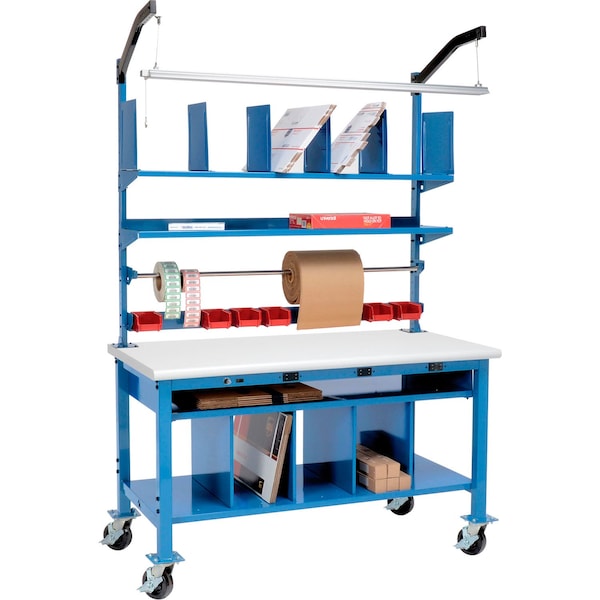 Complete Mobile Packing Workbench W/Power, Laminate Safety Edge, 72inW x 36inD