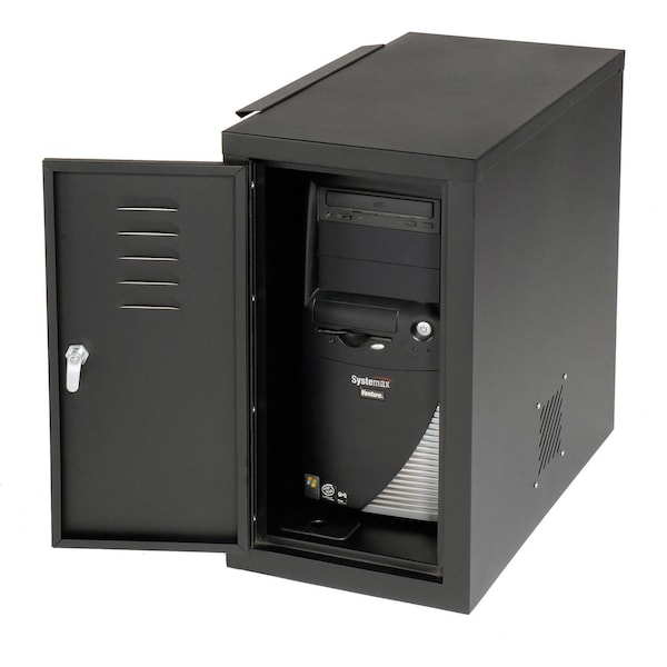 Durable steel constructionRoll formed edge hooks on lower compartment for installationLouvered doors for ventilationCylinder lock for securityConveniently stores CPU TowersEasily hooks onto Mobile Security CRT, LCD and Console Computer Cabinets Acts as a side shelf for added spaceNote: cannot install both side shelf and side cabinet to one side of computer cabinet