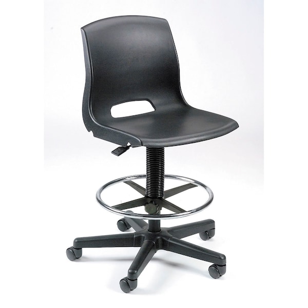 Contoured, molded polypropylene seatPneumatic seat height adjustment360° height adjustable foot ring Stable 5 blade baseHooded swivel casters