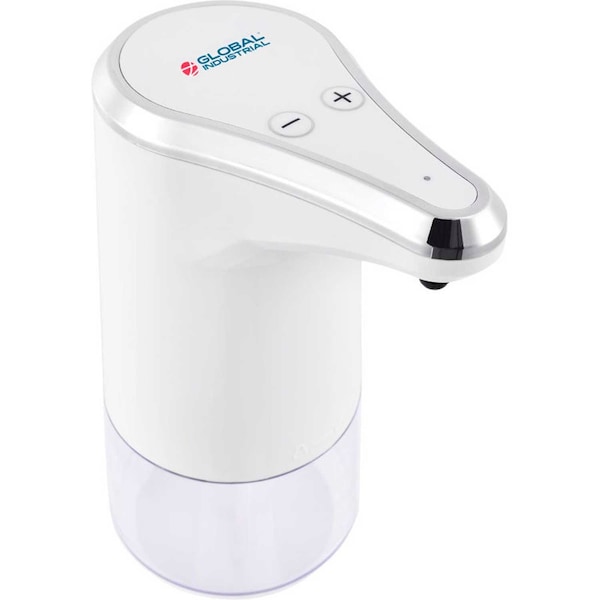 The Global Industrial Countertop Automatic Gel Sanitizer Dispenser is the perfect dispensing station for any lobby, waiting room or table close to a common entry, gathering or exit point. This automatic dispenser is designed to only accept sanitizing gel solutions up to a 350 mL capacity and dispenses small amounts via contact-free activation. Simply reach hands underneath the spout within the unit's detection range. The sleek plastic frame construction is a neutral white and chrome finish that compliments any workplace or commercial setting from hotel check-in stations to office reception desks. In addition to being lightweight and compact in design to allow for a quick and convenient setup or placement, the unit is battery powered for convenient operation management.