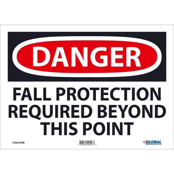 Danger Fall Protection Required 10x14, Pressure Sensitive Vinyl