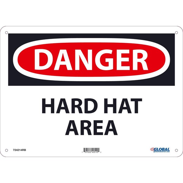 Danger Hard Hat Area, 10x14, Rigid Plastic