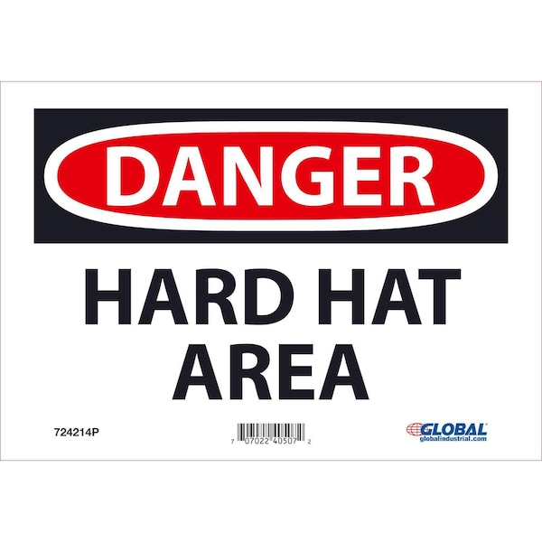 Danger Hard Hat Area, 7x10, Pressure Sensitive Vinyl