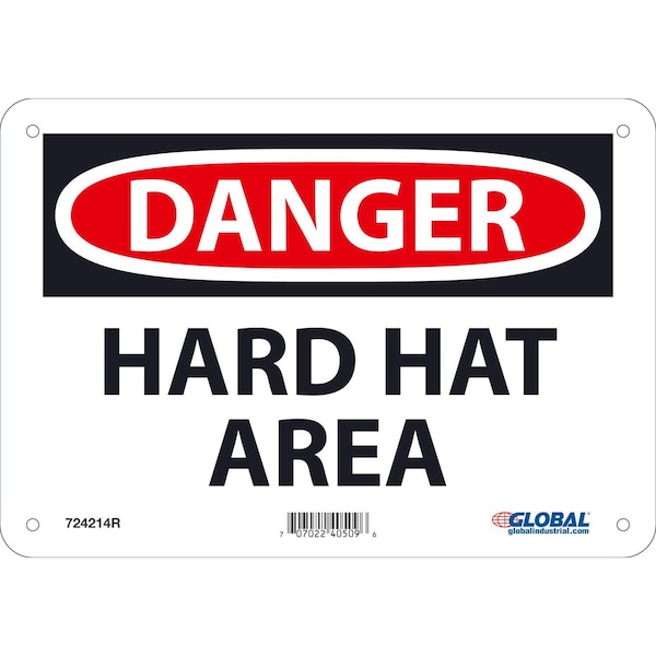 Danger Hard Hat Area, 7x10, Rigid Plastic