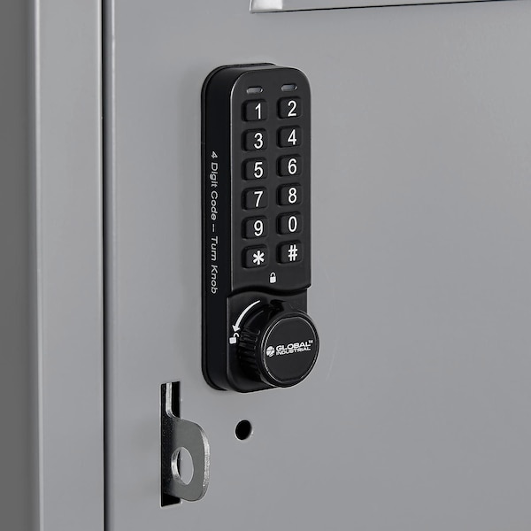 Simple keypad operation with universal key for emergency unlocking. Available Lock Modes: Master, Sub-master, and User code. Programmable in public mode or private mode. The Global Industrial™ Electronic Vertical Keypad Lock mounts to flat locker doors to provide added security for your belongings. These locks are suitable for locker doors on a 1-Tier, 2-Tier, 3-Tier, 4-Tier, or 6-Tier locker. This digital lock is the ideal for securing lockers in gyms, fitness centers, hotels, and similar facilities. The lock is easily programmable and can be used in either public default mode for single-use passcodes or private mode for longer-term individual use. Surface mount for easy installation, but cannot be used on recessed handles. All-metal housing. Lithium button cell battery included. Suitable for various door thickness from 0.6mm to 20mm. Slim 10mm profile, vertical lock body. One lock can switch between public mode and private mode freely