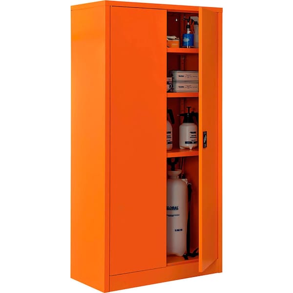 For securable and supreme level storage management at facilities, businesses and other commercial establishments, the Global Industrial; Emergency Preparedness Cabinet is your solution for securely containing medical items, PPE and similar pandemic management supplies. This standalone, double door cabinet occupies minimal space, making it suitable for any hallway, warehouse room or commercial interior. Full body steel construction assures impact resistance to maintain a smooth and industrially resilient quality. Easy to assemble with only 4 screws. Bright orange color finish provides high visibility.
