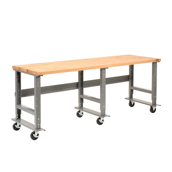 Extra Long Mobile Workbench, 96 x 36in, Adjustable Height, Maple Square Edge