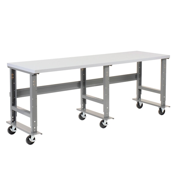 Extra Long Mobile Workbench, 96x36in, Adjustable Height, Laminate Square Edge