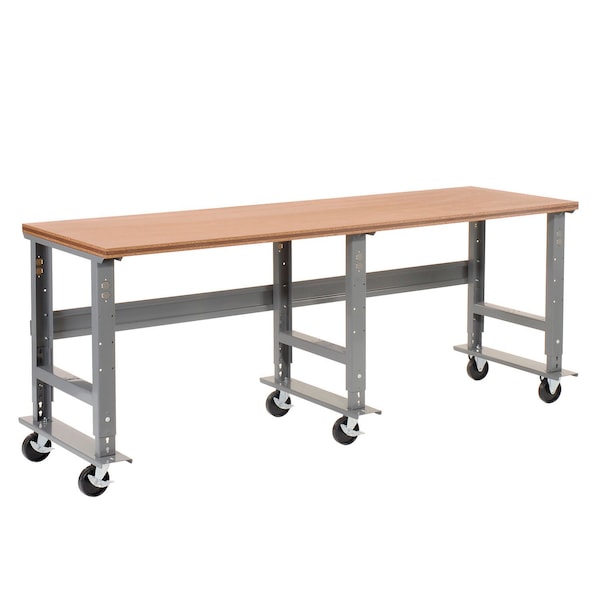 Extra Long Mobile Workbench, 96x36in, Adjustable Height, Shop Top Square Edge