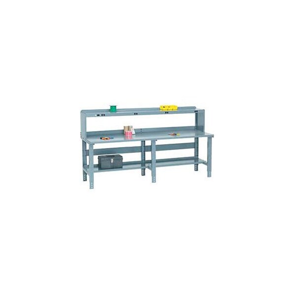 Extra Long Workbench w/ Steel Square Edge Top & Power Riser, 96inWx30inD, Gray