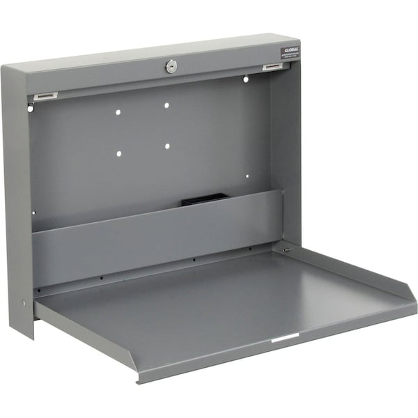 Folding Wall Mounted Shop Desk, Locking, 20W x 3-3/8D x 16-3/8H, Gray