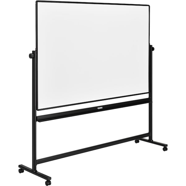 Board size 96W x 48H, Frame size 98-1/2W x 23D x 69H. Board rotates 360 degrees on a pivot hinge and locks into the place of your choice for different viewing angles. Board can be locked into place using tightening knobs on either end. Painted Steel surface resists staining and ghosting. Four 3 casters 2 locking provides in room stability and allows you to easy transport from room to room.