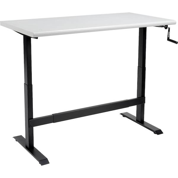 Telescoping adjustable-height legs allow users the flexibility to sit or stand. Includes manual crank to raise and lower the work surface. Durable and sturdy craftsmanship. Improve circulation and help reduce fatigue with the Global Industrial™ Manual Crank Adjustable-Height Workbench. The telescoping legs adjust from 28in to 48in in height allowing users to choose whether they want to sit or stand during their workday. Ideal for repair and assembly areas with multiple shifts, this workbench, with laminate top, minimizes bending and stretching unnecessarily while the safety edge design helps prevents bodily injury. Surface measurements: 60inW x 30inD. Frame color: Black. Weight capacity: 500 lbs. Table top thickness: 1-5/8in.