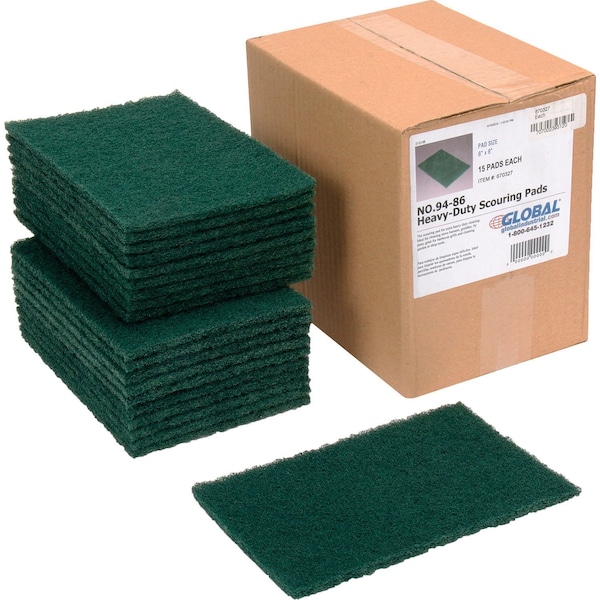 Heavy Duty Scouring Pads, Green, 6 x 9, 15PK
