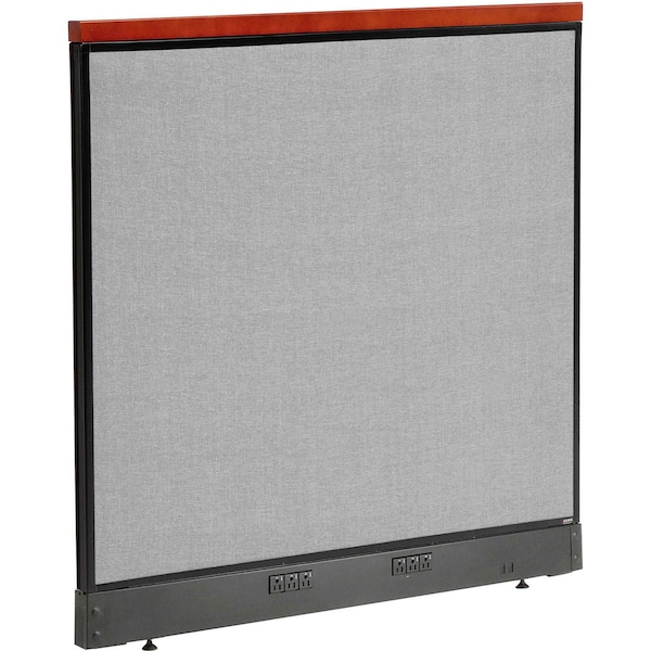 Interion By Global Industrial deluxe partition panels feature a wood accent at the top of the panel. Measuring 48-1/4 inches, wood cap attaches to top of partition, trimming panels with a Cherry finish. Cap measures 1-1/2" high and 1-3/4" deep. . Raceway partitions create private offices and cubicles with built-in power options for computers and other electric equipment. Raceways provide convenient access for data cables & electrical wiring to keep office spaces clean and clear of visible wires. Electric and non-electric panels can be connected together to only place power where you need it. Panel is flame retardant to meet California 117 flammability standard. 1-3/4" thick fabric upholstered panels feature an interior engineered wood (MDF) frame and honeycomb core covered with heavy tackable liner for structural strength. 4"H Black powder coated steel raceways include UL listed modular electric components (cables & receptacles) and cable management openings for phone & data cables. Removable raceway covers allow easy wiring access. Panels with Electric raceways include built-in double-sided power box with four circuit 1 receptacles and modular cables. Each power box can accept up to 6 receptacles; maximum 3 per side (additional Receptacles sold separately). Use included blanks to cover unused openings. 36-1/4"W Electric Panel includes one double-sided power box. Includes adjustable leveling feet for uneven surfaces These panels do not include cable connection to a power source, which are sold separately. For hardwire installation, please see models 249054 (72") or 249055 (144"). For plug in installation , please see model 249066.