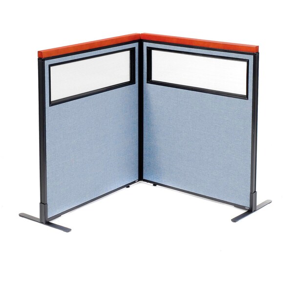 Interion Deluxe Freestanding 2-Panel Corner Divider w/Partial Window 36-1/4"W x 43-1/2"H Blue