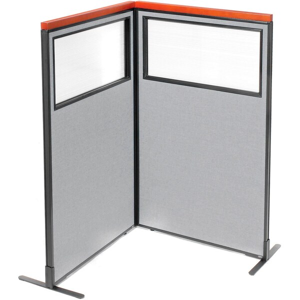 Interion Deluxe Freestanding 2-Panel Corner Divider w/Partial Window 36-1/4"W x 61-1/2"H Gray