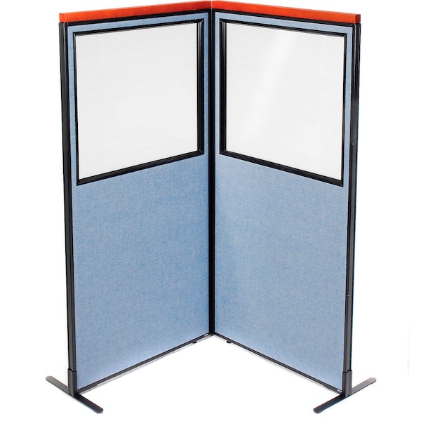 Interion Deluxe Freestanding 2-Panel Corner Divider w/Partial Window 36-1/4"W x 73-1/2"H Blue