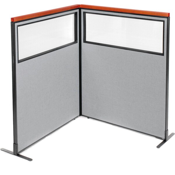 Interion Deluxe Freestanding 2-Panel Corner Divider w/Partial Window 48-1/4"W x 61-1/2"H Gray