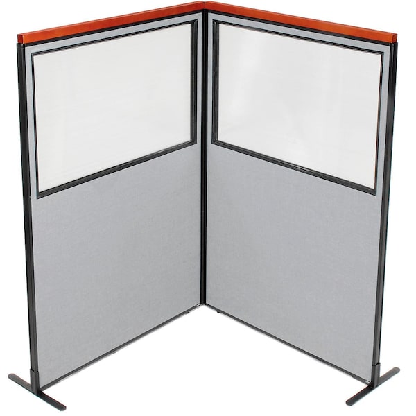 Interion Deluxe Freestanding 2-Panel Corner Divider w/Partial Window 48-1/4"W x 73-1/2"H Gray